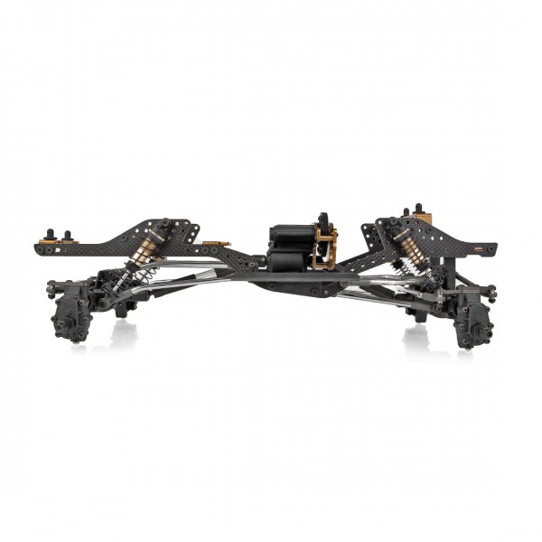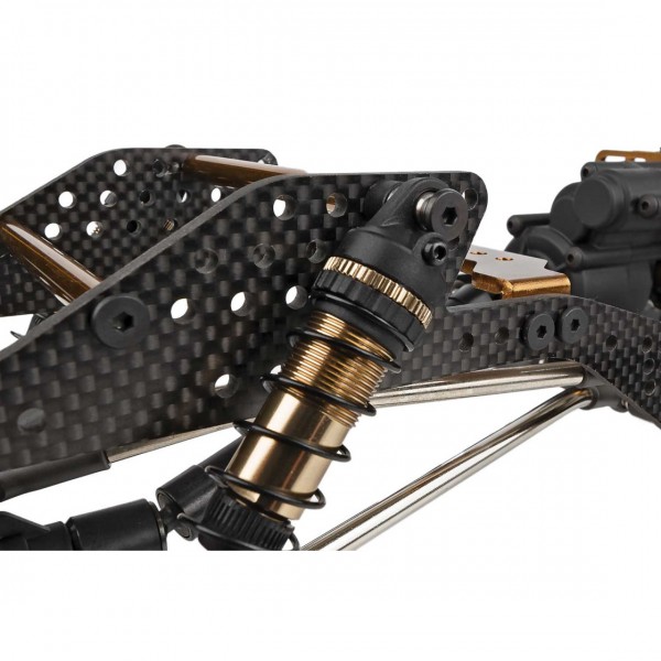 Este kit é voltado para o rastreador RC competitivo sério e vem repleto de recursos para progredir em cada portão. O chassi leve de fibra de carbono de trilho plano, mantido unido com suportes de alumínio usinados, é forte, mas leve o suficiente para ajudar a manter o centro de gravidade baixo. Com muitas posições de montagem de choque e link, há infinitos incrementos de opções de ajuste de suspensão disponíveis.