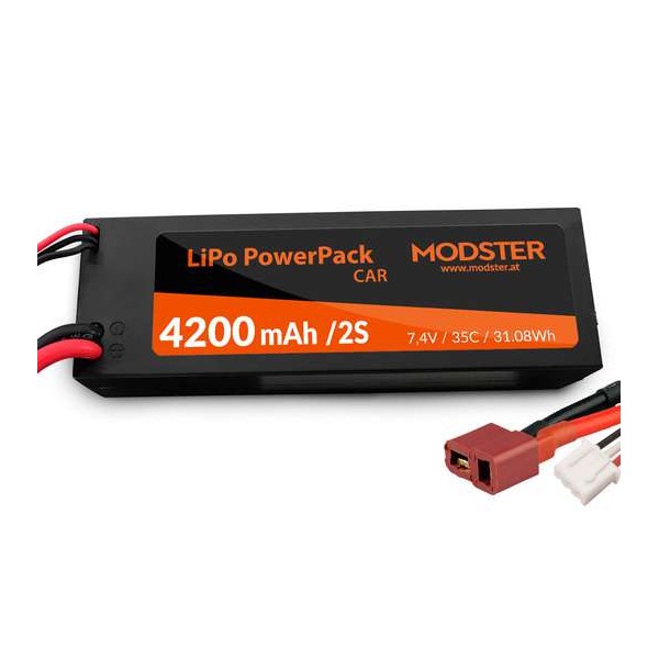 Bateria MODSTER LiPo 2S 7,4V 4200 mAh 35C (Conector T) PowerPack para Carro com Caixa Rígida